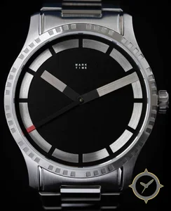 A Minimalist watch with a vintage-inspired 29mm case, crafted from stainless steel featuring a black dial with a unique matte finish.