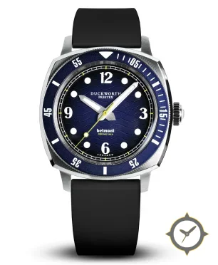 A Dive watch with a bold 46.5mm presence on the wrist, crafted from stainless steel featuring a blue dial with a unique wavy (engraved wave pattern) finish.