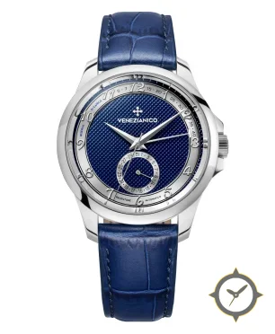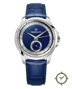 A Dress watch with a versatile 38mm case, that suits most wrists, crafted from stainless steel featuring a blue dial with a unique guilloché (hobnail / waffle) finish.