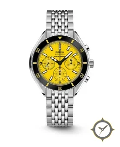 A Dive watch with a versatile 41mm case, that suits most wrists, crafted from stainless steel featuring a yellow dial with a unique lacquer finish.