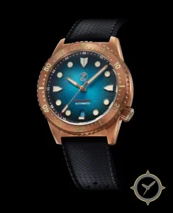 A Dive watch with a versatile 38.5mm case, that suits most wrists, crafted from bronze featuring a blue dial with a unique sunburst finish.