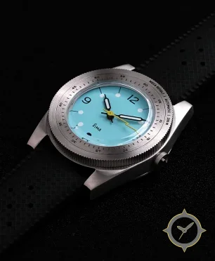 A Dive watch with a bold 44.5mm presence on the wrist, crafted from stainless steel featuring a turquoise dial with a unique lacquer finish.
