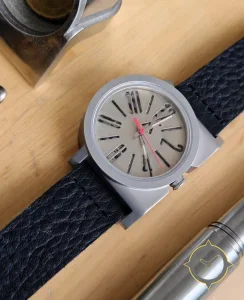 A Minimalist watch, crafted from stainless steel featuring a silver dial with a unique matte / sandblasted finish finish.