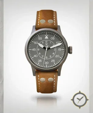 A Pilot watch with a bold 46.5mm presence on the wrist, crafted from stainless steel featuring a gray dial with a unique matte finish.