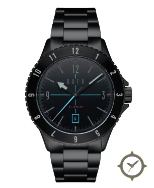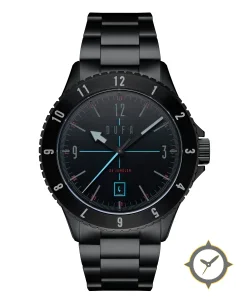 A Pilot watch with a bold 47.5mm presence on the wrist, crafted from stainless steel featuring a black dial with a unique matte finish.