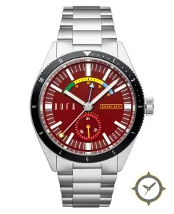 A Dive watch with a versatile 39.5mm case, that suits most wrists, crafted from stainless steel featuring a red dial with a unique matte finish.