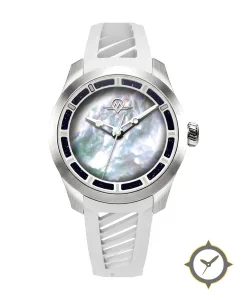 A Sports watch with a versatile 39mm case, that suits most wrists, crafted from stainless steel featuring a gray dial with a unique mother-of-pearl finish.