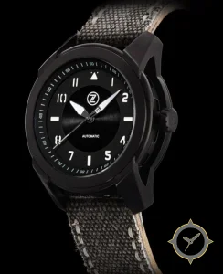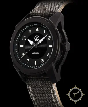 A Tactical watch with a vintage-inspired 34mm case, crafted from Coating featuring a black dial with a unique brushed (sunburst center) finish.