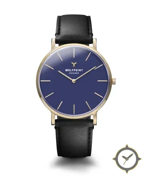 A Minimalist watch with a bold 44mm presence on the wrist, crafted from stainless steel featuring a blue dial with a unique glossy lacquer finish.