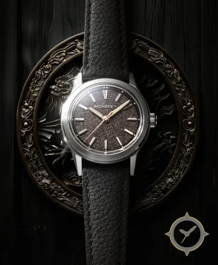 A Dress watch, crafted from stainless steel featuring a brown dial with a unique sparkling/aventurine (granular, starfield-like) finish.