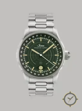 A GMT watch with a bold 46mm presence on the wrist, crafted from stainless steel featuring a green dial with a unique concentric rings (radial) finish and a true GMT complication for tracking a second time zone.