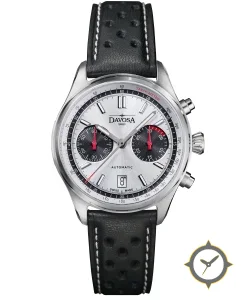 A Chronograph watch with a vintage-inspired 37.5mm case, crafted from stainless steel featuring a silver dial with a unique sunburst finish.