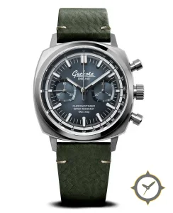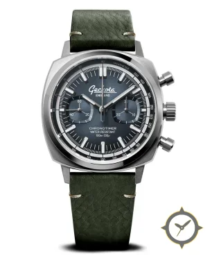 A Chronograph watch with a bold 44.5mm presence on the wrist, crafted from stainless steel featuring a blue dial with a unique sunburst finish.