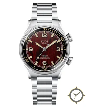 A Dive watch with a versatile 38mm case, that suits most wrists, crafted from stainless steel featuring a crimson dial with a unique brushed vertical / wood-grain finish finish.