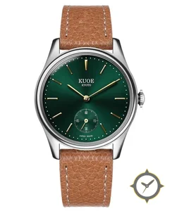 A Dress watch with a vintage-inspired 36.5mm case, crafted from stainless steel featuring a green dial with a unique sunburst finish.