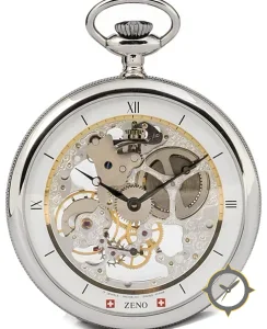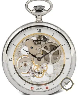 A Skeleton watch, crafted from stainless steel featuring a silver dial with a unique skeletonized / exposed movement with engraved bridges finish.