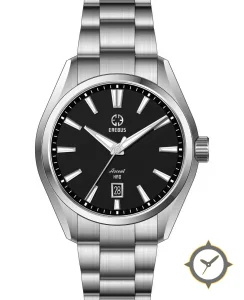 A Sports watch with a bold 42mm presence on the wrist, crafted from stainless steel featuring a black dial with a unique matte finish.