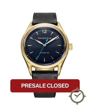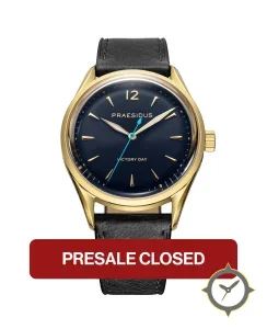 A Dress watch with a vintage-inspired 36mm case, crafted from gold featuring a navy dial with a unique radial sunburst (brushed) finish.
