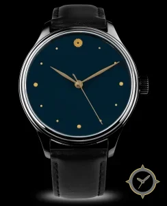 A Minimalist watch with a vintage-inspired 35mm case, crafted from stainless steel featuring a navy dial with a unique smooth lacquer finish.