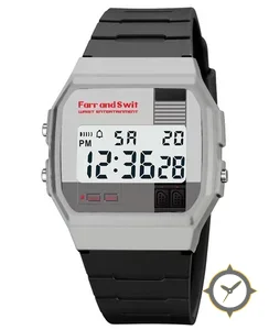 A Digital watch with a bold 42mm presence on the wrist, crafted from resin featuring a white dial with a unique matte plastic finish.