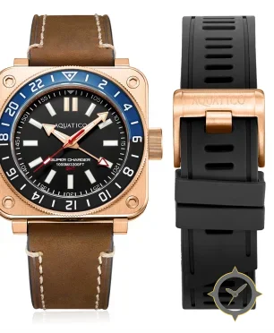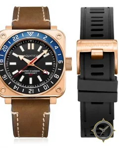 A GMT watch with a versatile 40mm case, that suits most wrists, crafted from bronze featuring a black dial with a unique matte finish and a true GMT complication for tracking a second time zone.
