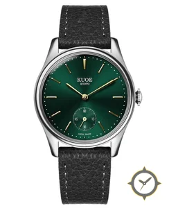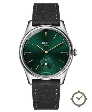 A Dress watch with a vintage-inspired 32mm case, crafted from stainless steel featuring a green dial with a unique sunburst/gradient finish.