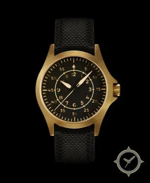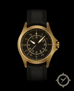 A Pilot watch with a bold 41.5mm presence on the wrist, crafted from bronze featuring a black dial with a unique matte finish.