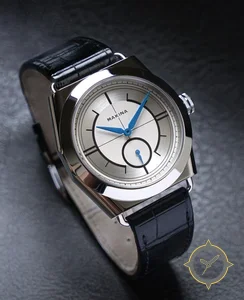 A Dress watch with a bold 42.5mm presence on the wrist, crafted from stainless steel featuring a silver dial with a unique two-tone concentric/stepped sectors finish.