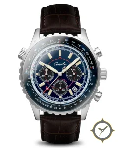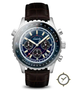 A Pilot watch with a bold 45.5mm presence on the wrist, crafted from stainless steel featuring a navy dial with a unique sunburst finish.
