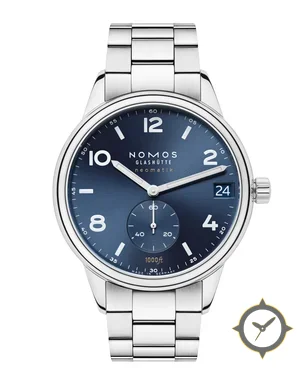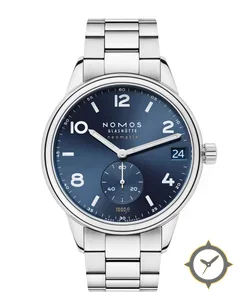 A Sports watch with a bold 48mm presence on the wrist, crafted from stainless steel featuring a blue dial with a unique sunburst / radial brushed finish.