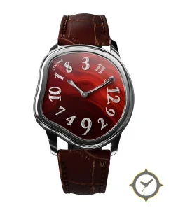 A Dress watch, crafted from stainless steel featuring a red dial with a unique swirled lacquer / marbled finish finish.