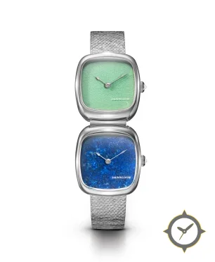 A Dress watch with a bold 43mm presence on the wrist, crafted from stainless steel featuring a turquoise dial with a unique natural stone texture finish.