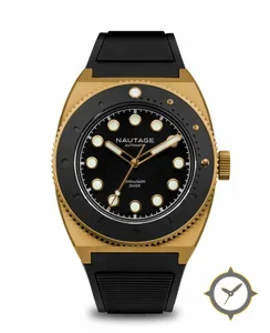 A Dive watch with a vintage-inspired 37.5mm case, crafted from gold featuring a black dial with a unique matte finish.