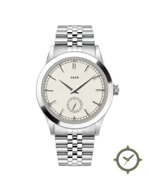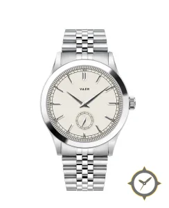 A Dress watch with a vintage-inspired 35.5mm case, crafted from stainless steel featuring a white dial with a unique matte lacquer finish.