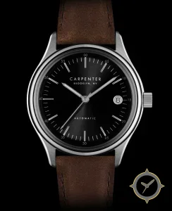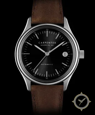 A Dress watch with a vintage-inspired 31.5mm case, crafted from stainless steel featuring a black dial with a unique sunburst finish.