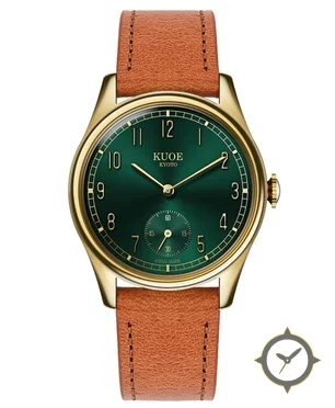 A Dress watch with a vintage-inspired 31.5mm case, crafted from gold featuring a green dial with a unique sunburst finish.