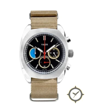 A Chronograph watch with a bold 50mm presence on the wrist, crafted from stainless steel featuring a black dial with a unique matte finish.