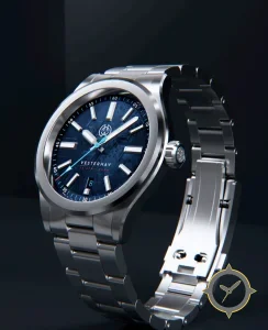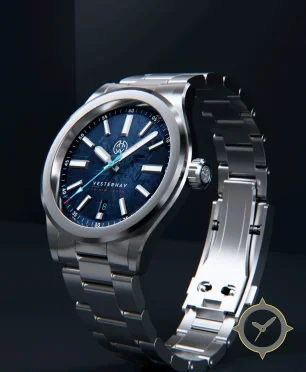 A Dive watch with a bold 44.5mm presence on the wrist, crafted from stainless steel featuring a blue dial with a unique meteorite-like textured finish with subtle relief finish.