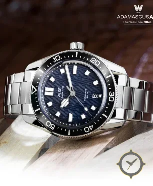 A Dive watch with a bold 47mm presence on the wrist, crafted from stainless steel featuring a blue dial with a unique textured chevron/wave finish.