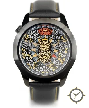 A Dress watch with a versatile 40.5mm case, that suits most wrists, crafted from stainless steel featuring a gold dial with a unique enamel-like, multi-layer printed/stained-glass mosaic finish finish.