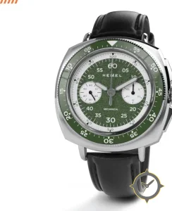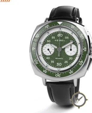 A Chronograph watch with a versatile 41mm case, that suits most wrists, crafted from stainless steel featuring a green dial with a unique textured/grainy (sandpaper-like) finish.
