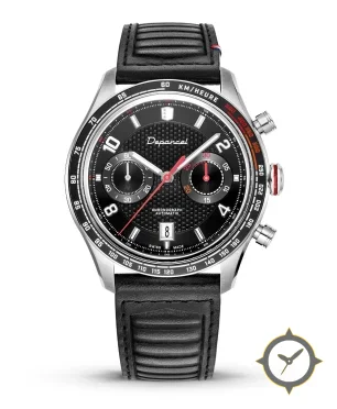 A Racing watch with a vintage-inspired 37.5mm case, crafted from stainless steel featuring a black dial with a unique honeycomb (raised hexagonal) finish.