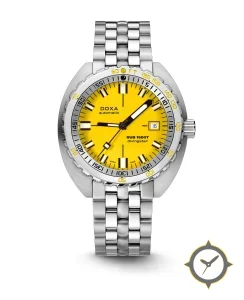 A Dive watch with a bold 44mm presence on the wrist, crafted from stainless steel featuring a yellow dial with a unique matte finish.