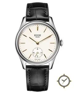 A Dress watch with a vintage-inspired 36.5mm case, crafted from stainless steel featuring a white dial with a unique matte finish.