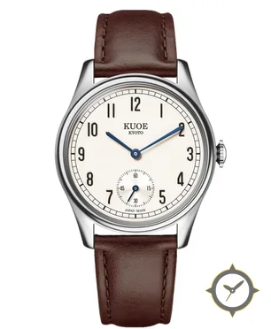 A Dress watch with a vintage-inspired 31.5mm case, crafted from stainless steel featuring a white dial with a unique matte finish.