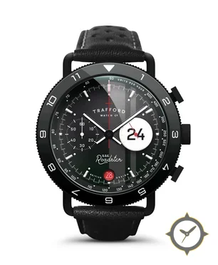 A Chronograph watch, crafted from stainless steel featuring a black dial with a unique matte with subtle sunburst and a vertical racing stripe finish.