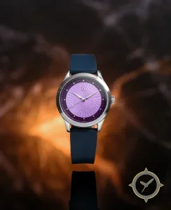 A Dress watch with a versatile 39.5mm case, that suits most wrists, crafted from stainless steel featuring a purple dial with a unique guilloche finish.