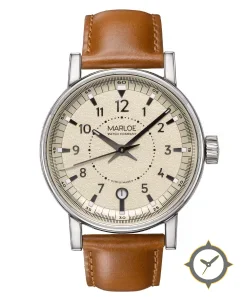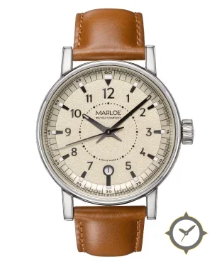 A Vintage watch with a vintage-inspired 32.5mm case, crafted from stainless steel featuring a white dial with a unique granular / sandblasted texture finish.