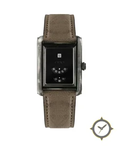 A Vintage watch with a vintage-inspired 34.5mm case, crafted from stainless steel featuring a black dial with a unique glossy finish.