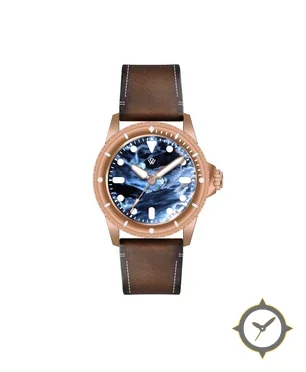 A Dive watch with a bold 45.5mm presence on the wrist, crafted from gold featuring a blue dial with a unique marbled / wave-like texture finish.